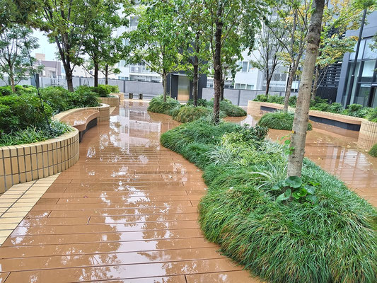 ■2025 中野駅前ツインータワー中庭 特注れんが:黄色系 210×100×60他